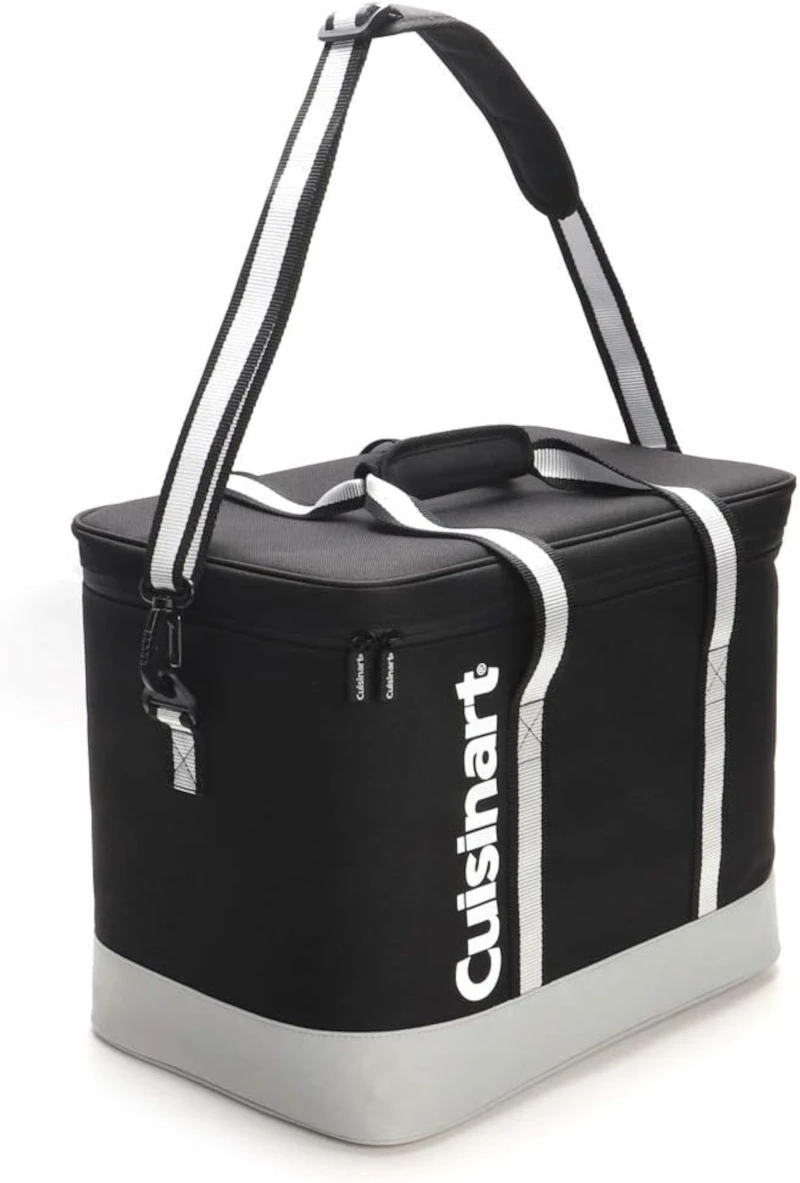 - Lined interior (600D material) to contain cool air or heat (for hot food). Use with cool ice packs