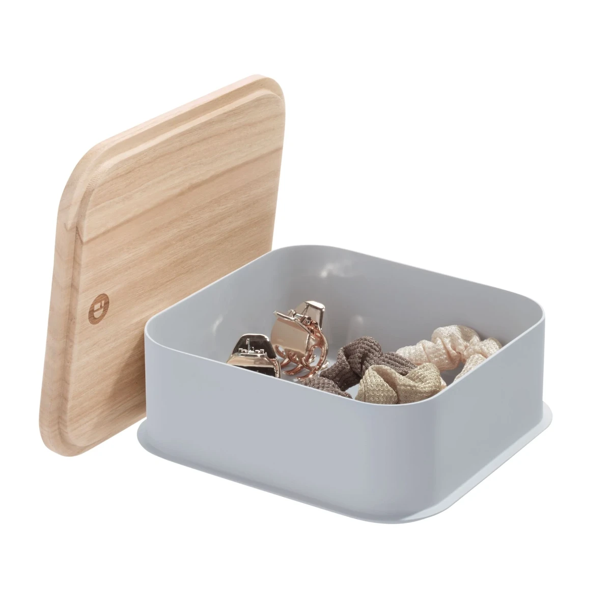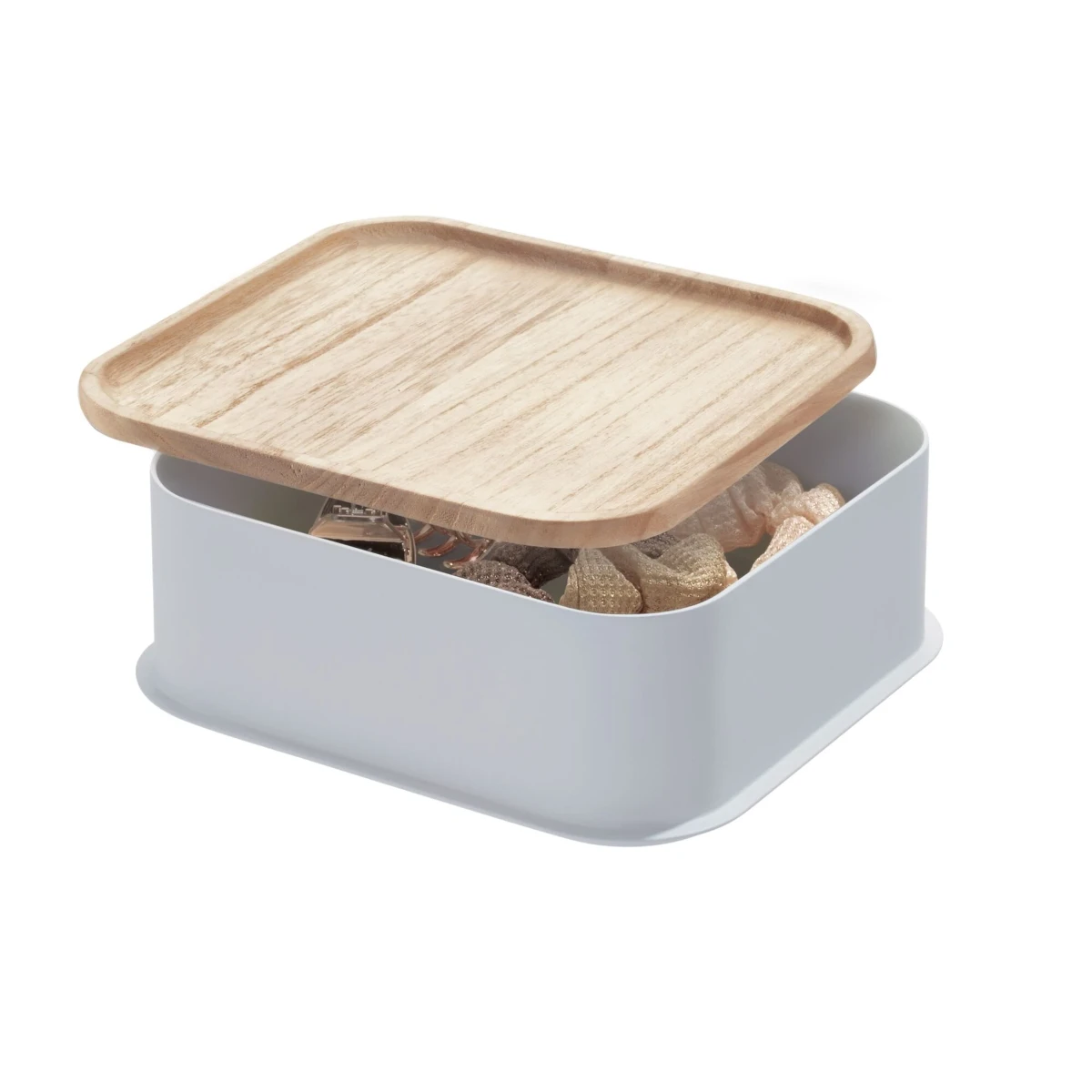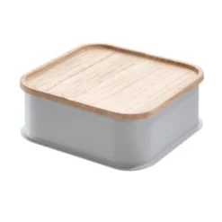Sustainability meets storage with the iDesign Eco Recycled Plastic 8.4″ Medium Bin with Paulownia Wood Lid. This eco-friendly bin provides storage in the bathroom for items such as makeup, skincare, soaps, lotions, hair and body care products, and more. The coordinating lid keeps items in place and provides additional catch-all storage on top of the bin. This versatile lidded storage container is also great for use in the bedroom, closet, kitchen, pantry, office, craft room, nursery, and more.