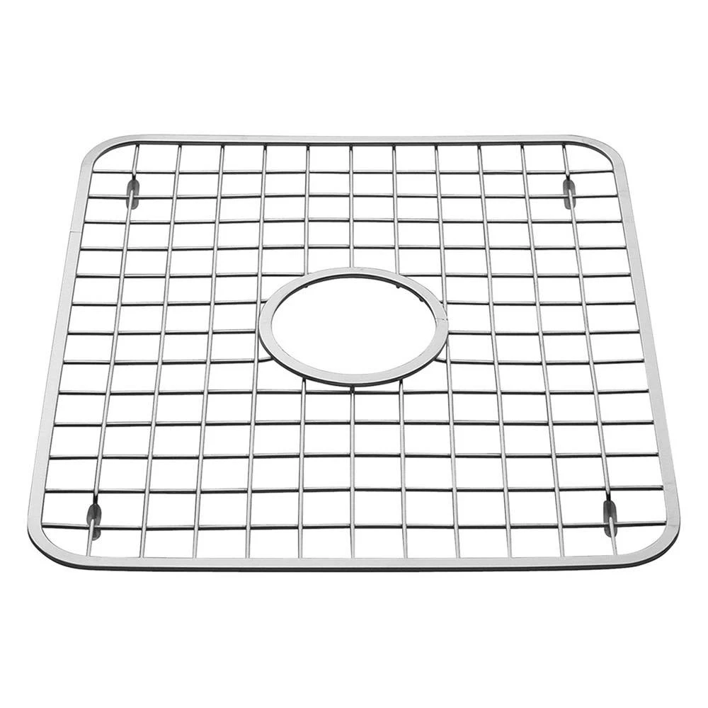 A kitchen sink accessory offering a grid pattern and modern styling with non-skid plastic feet to prevent slipping.