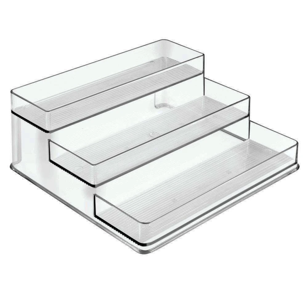 Tiered kitchen storage for pantries or countertops.