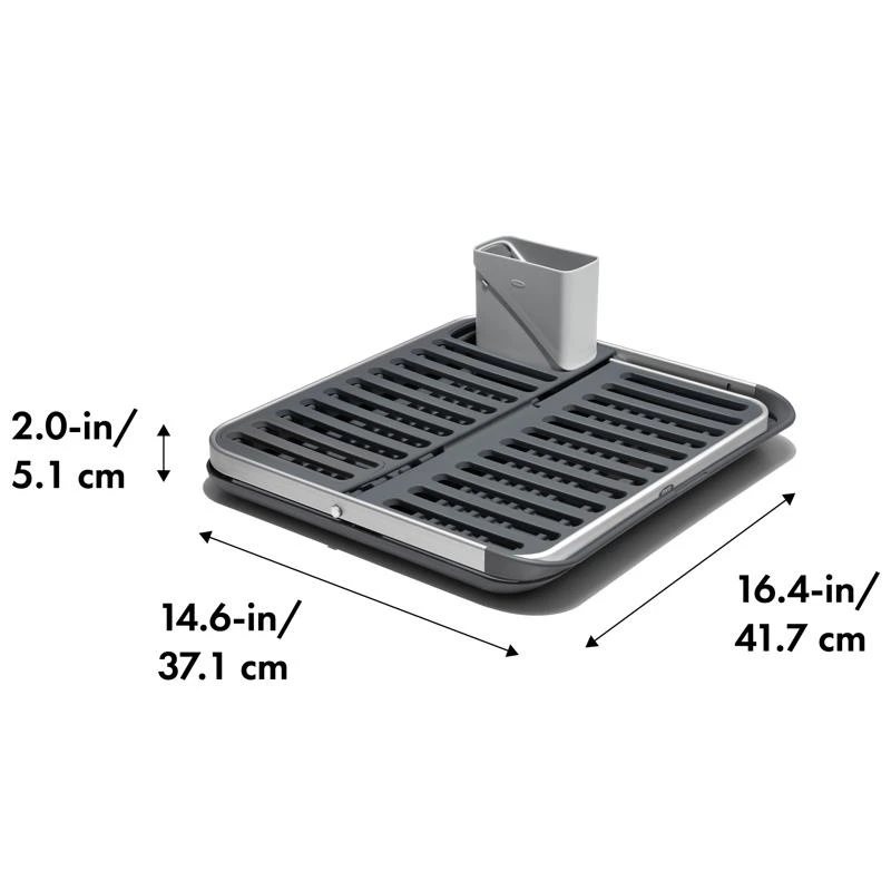 - This elevated dish rack and drain board, folds completely flat for use as a drying board or for compact storage.