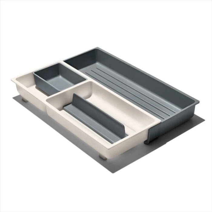The OXO Good Grips Expandable Kitchen Tool Drawer Organizer helps you conquer kitchen clutter. The extendable open area is perfect for irregular-shaped or long-handled utensils, while adjustable dividers allow you to customize the Organizer for your kitchen’s needs. Our Organizer includes a storage cup that provides a neat and tidy landing spot for small gadgets like wine stoppers and bag clips. The non-slip feet keep the Organizer in place when you open and close the drawer. The space-maximizing design features square corners to eliminate gaps and deliver a clean look in your drawers. The dividers and storage cup are removable for thorough cleaning.