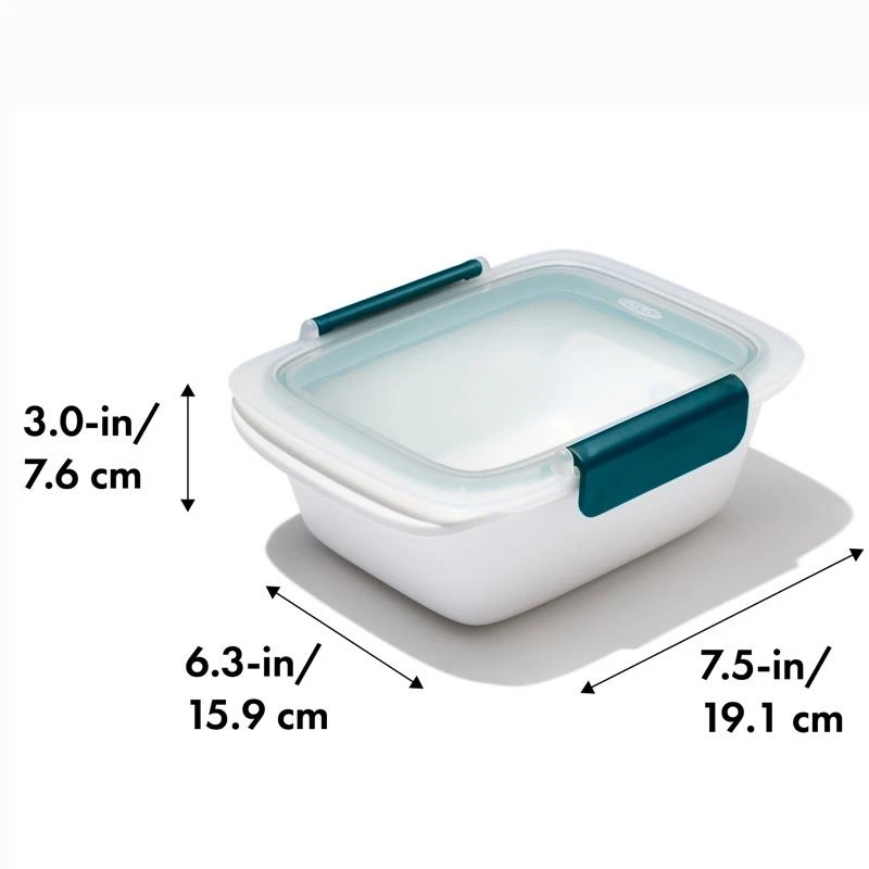 - The container measures: 19.1cm x 15.9cm x 7.6cm (7.5″ x 6.3″ x 3″).