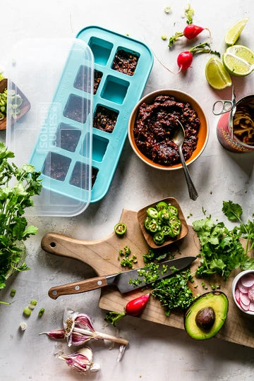 The Souper Cubes® 2 Tablespoon tray makes freezing and storing tomato paste, herbed butters, and other small portioned foods easier than ever.