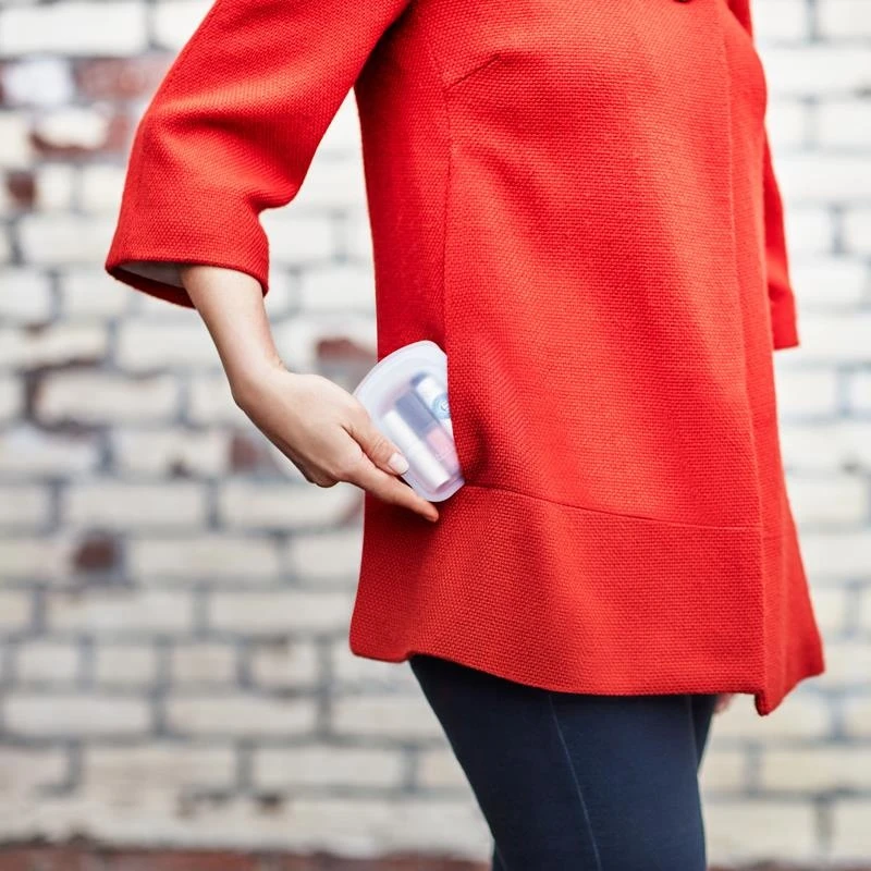 3.5 x 4.5″ (4oz) / 9 x 11.5cm (120ml), clear/aqua, platinum silicone, BPA and BPS free.