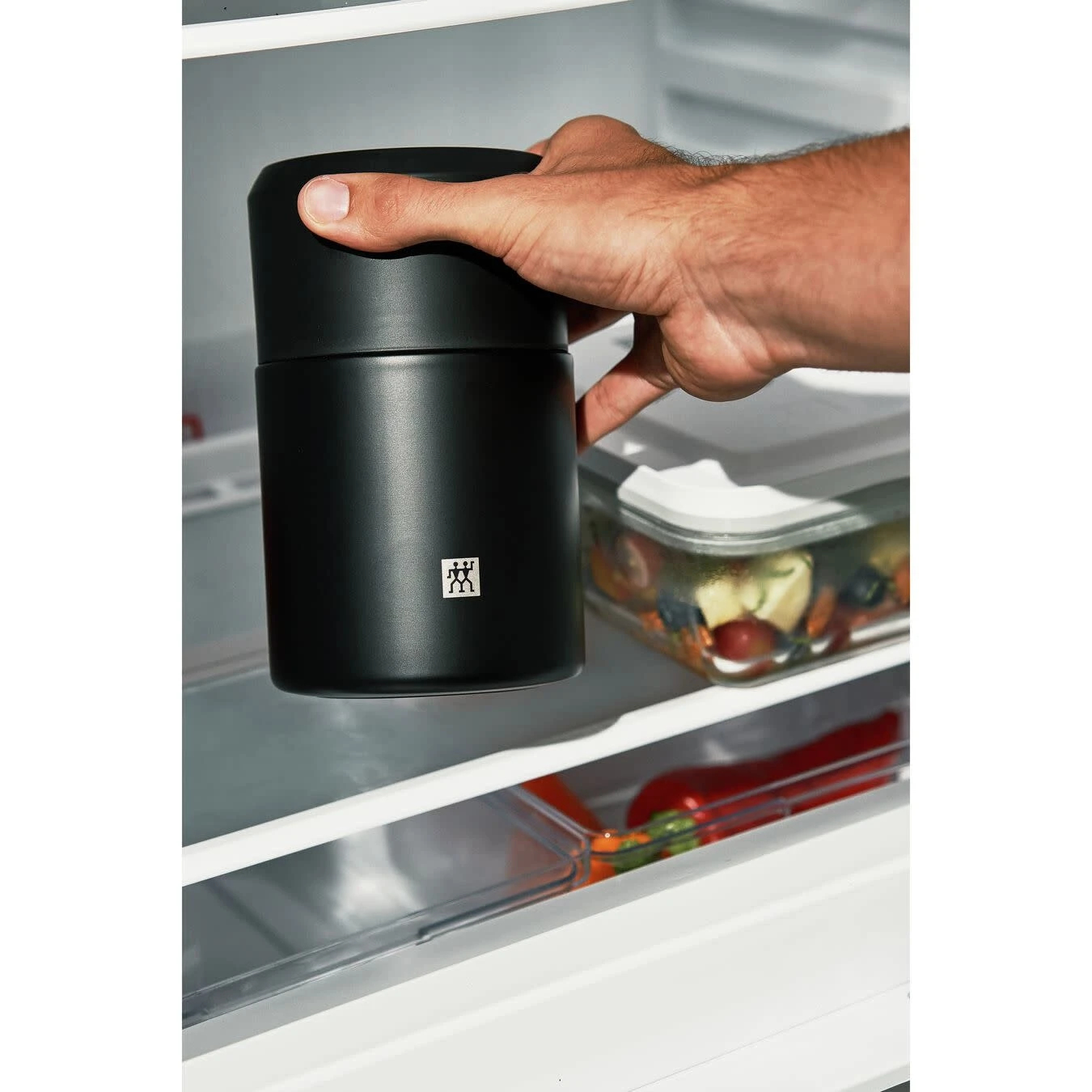 Hot soup in the park? Or chilled yogurt on the beach? The ZWILLING Thermo Food Jar lets you enjoy hot and cold food anywhere. The thermos jar is vacuum insulated with double-walled stainless steel. This keeps the contents hot for up to 8 hours or cold for up to 11 hours. The completely leakproof food jar allows you to take up to 700 ml with absolutely no drips or spills. Also incredibly practical: The lid also serves as a handy bowl and the cap features an integrated fold-out spoon. The thermos food jar is made from high-quality stainless steel and plastic. This means that it’s especially robust and dishwasher-safe. The non-slip base is coated with plastic to ensure good stability. It also means that setting down the lunch box with integrated spoon is particularly gentle and quiet. The food jar in black is pure in design and absolutely timeless. The modern design forgoes superfluous decorations to focus on premium quality and absolute functionality.